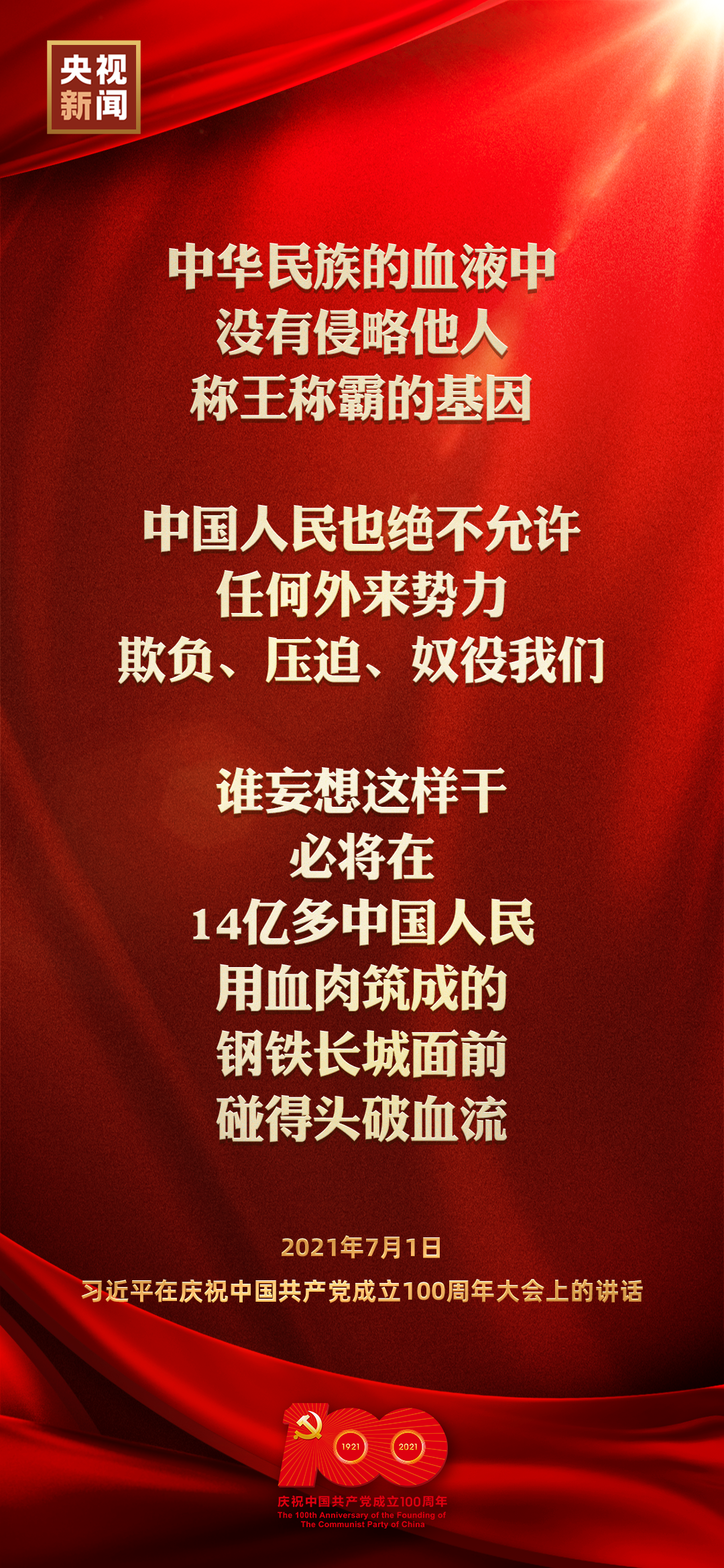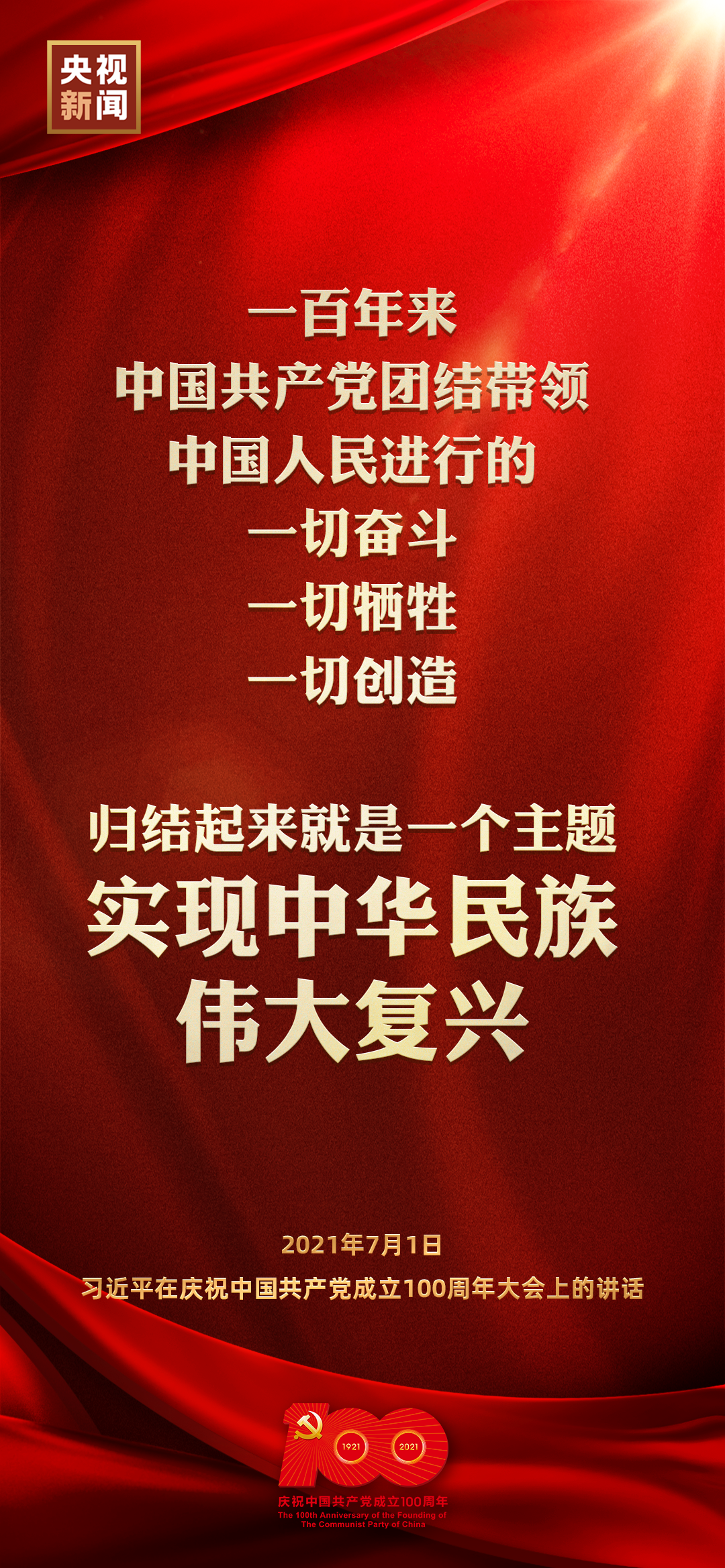 今天,庆祝中国共产党成立100周年大会在北京天安门广场隆重举行,中共中央总书记、国家主席、中央军委主席习近平发表重要讲话。